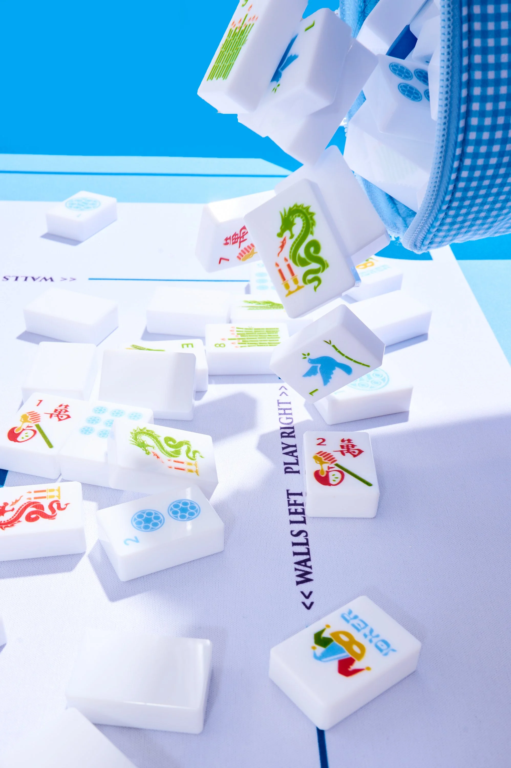 These gorgeous bags are meant to hold everything Mahjong: your tiles, your racks, even your mats. In a set of coordinating blues.